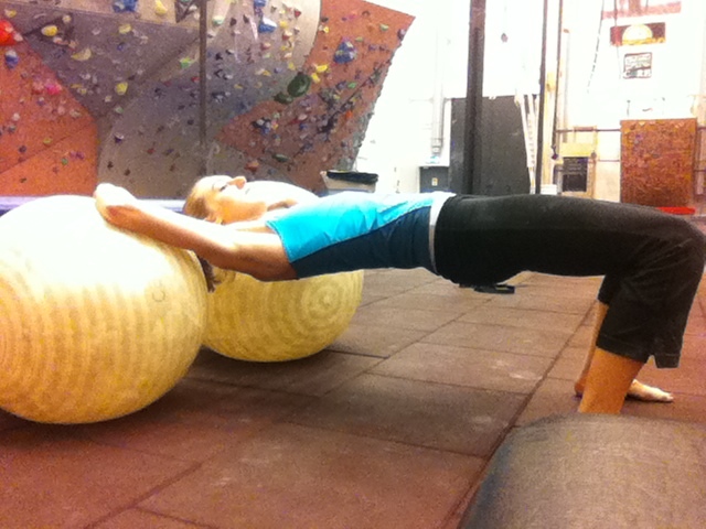 Målet är att kunna göra det på en pilatesboll, men sist jag testade var jag för svag och fick ont i svanken.